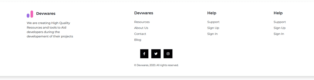 <CDBFooter class="shadow"> <div class="d-flex flex-column mx-auto py-5" style="width: 80%;"> <div class="d-flex justify-content-between"> <div> <CDBLink class="d-flex align-items-center p-0 text-dark"> <img alt="logo" src="../../../assets/img/pages/logo.png" width="30px" /> <span class="ms-3 h5 font-weight-bold">Devwares</span> </CDBLink> <p class="my-3" style="width: 250px;" >We are creating High Quality Resources and tools to Aid developers during the developement of their projects</p> <div class="mt-4"> <CDBBtn [flat]=true color="dark"> <CDBIcon [fab]=true icon="facebook-f" ></CDBIcon> </CDBBtn> <CDBBtn [flat]=true color="dark" class="mx-3"> <CDBIcon [fab]=true icon="twitter" ></CDBIcon> </CDBBtn> <CDBBtn [flat]=true color="dark"> <CDBIcon [fab]=true icon="instagram" ></CDBIcon> </CDBBtn> </div> </div> <div> <p class="h5 mb-4" style="font-weight:600">Devwares</p> <ul style="list-style:none; cursor:pointer"> <li class="my-2"><a class="text-dark" href="/">Resources</a></li> <li class="my-2"><a class="text-dark" href="/">About Us</a></li> <li class="my-2"><a class="text-dark" href="/">Contact</a></li> <li class="my-2"><a class="text-dark" href="/">Blog</a></li> </ul> </div> <div> <p class="h5 mb-4" style="font-weight:600">Help</p> <ul style="list-style:none; cursor:pointer"> <li class="my-2"><a class="text-dark" href="/">Support</a></li> <li class="my-2"><a class="text-dark" href="/">Sign Up</a></li> <li class="my-2"><a class="text-dark" href="/">Sign In</a></li> </ul> </div> <div> <p class="h5 mb-4" style="font-weight:600">Help</p> <ul style="list-style:none; cursor:pointer"> <li class="my-2"><a class="text-dark" href="/">Support</a></li> <li class="my-2"><a class="text-dark" href="/">Sign Up</a></li> <li class="my-2"><a class="text-dark" href="/">Sign In</a></li> </ul> </div> </div> <small class="text-center mt-5">© Devwares, 2020. All rights reserved.</small> </div> </CDBFooter><CDBFooter class="shadow"> <div class="d-flex flex-column mx-auto py-5" style="width:80%"> <div class="d-flex justify-content-between"> <div class="align-self-center"> <CDBLink class="d-flex align-items-center p-0 text-dark"> <img alt="logo" src="../../../assets/img/pages/logo.png" width="30px" /> <span class="ms-3 h5 font-weight-bold">Devwares</span> </CDBLink> <div class="mt-5"> <CDBBtn [flat]=true color="dark"> <CDBIcon [fab]=true icon="facebook-f"></CDBIcon> </CDBBtn> <CDBBtn [flat]=true color="dark" class="mx-3"> <CDBIcon [fab]=true icon="twitter"></CDBIcon> </CDBBtn> <CDBBtn [flat]=true color="dark"> <CDBIcon [fab]=true icon="instagram"></CDBIcon> </CDBBtn> </div> </div> <div> <p class="h5 mb-4" style="font-weight:600">Devwares</p> <ul style="list-style:none; cursor:pointer"> <li class="my-2"><a class="text-dark" href="/">Resources</a></li> <li class="my-2"><a class="text-dark" href="/">About Us</a></li> <li class="my-2"><a class="text-dark" href="/">Contact</a></li> <li class="my-2"><a class="text-dark" href="/">Blog</a></li> </ul> </div> <div> <p class="h5 mb-4" style="font-weight:600">Help</p> <ul style="list-style:none; cursor:pointer"> <li class="my-2"><a class="text-dark" href="/">Support</a></li> <li class="my-2"><a class="text-dark" href="/">Sign Up</a></li> <li class="my-2"><a class="text-dark" href="/">Sign In</a></li> </ul> </div> <div> <p class="h5 mb-4" style="font-weight:600">Help</p> <ul style="list-style:none; cursor:pointer"> <li class="my-2"><a class="text-dark" href="/">Support</a></li> <li class="my-2"><a class="text-dark" href="/">Sign Up</a></li> <li class="my-2"><a class="text-dark" href="/">Sign In</a></li> </ul> </div> </div> <small class="text-center mt-5">© Devwares, 2020. All rights reserved.</small> </div> </CDBFooter><CDBFooter class="shadow"> <div class="d-flex flex-column mx-auto py-5" style="width:80%"> <div class="d-flex justify-content-between"> <div> <CDBLink class="d-flex align-items-center p-0 text-dark"> <img alt="logo" src="../../../assets/img/pages/logo.png" width="30px" /> <span class="ms-3 h5 font-weight-bold">Devwares</span> </CDBLink> <p class="my-3" style="width:250px">We are creating High Quality Resources and tools to Aid developers during the developement of their projects</p> </div> <div> <p class="h5 mb-4" style="font-weight:600">Devwares</p> <ul style="list-style:none; cursor:pointer"> <li class="my-2"><a class="text-dark" href="/">Resources</a></li> <li class="my-2"><a class="text-dark" href="/">About Us</a></li> <li class="my-2"><a class="text-dark" href="/">Contact</a></li> <li class="my-2"><a class="text-dark" href="/">Blog</a></li> </ul> </div> <div> <p class="h5 mb-4" style="font-weight:600">Help</p> <ul style="list-style:none; cursor:pointer"> <li class="my-2"><a class="text-dark" href="/">Support</a></li> <li class="my-2"><a class="text-dark" href="/">Sign Up</a></li> <li class="my-2"><a class="text-dark" href="/">Sign In</a></li> </ul> </div> <div> <p class="h5 mb-4" style="font-weight:600">Help</p> <ul style="list-style:none; cursor:pointer"> <li class="my-2"><a class="text-dark" href="/">Support</a></li> <li class="my-2"><a class="text-dark" href="/">Sign Up</a></li> <li class="my-2"><a class="text-dark" href="/">Sign In</a></li> </ul> </div> </div> <div class="text-center mt-4"> <div class="mb-4"> <CDBBtn [flat]=true color="dark"> <CDBIcon [fab]=true icon="facebook-f" ></CDBIcon> </CDBBtn> <CDBBtn [flat]=true color="dark" class="mx-3"> <CDBIcon [fab]=true icon="twitter" ></CDBIcon> </CDBBtn> <CDBBtn [flat]=true color="dark"> <CDBIcon [fab]=true icon="instagram" ></CDBIcon> </CDBBtn> </div> <small>© Devwares, 2020. All rights reserved.</small> </div> </div> </CDBFooter><CDBFooter class="shadow"> <div class="d-flex flex-column mx-auto py-5" style="width:80%"> <div class="d-flex justify-content-between"> <div class="align-self-center"> <CDBLink class="d-flex align-items-center p-0 text-dark"> <img alt="logo" src="../../../assets/img/pages/logo.png" width="30px" /> <span class="ms-4 h5 font-weight-bold">Devwares</span> </CDBLink> </div> <div> 