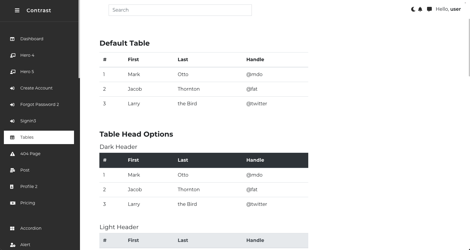 We built a Free and PRO admin template using Contrast Angular Bootstrap. This includes pages and dashboards which you can easily used to get started on any sass, admin, prelaunch or web app projects.